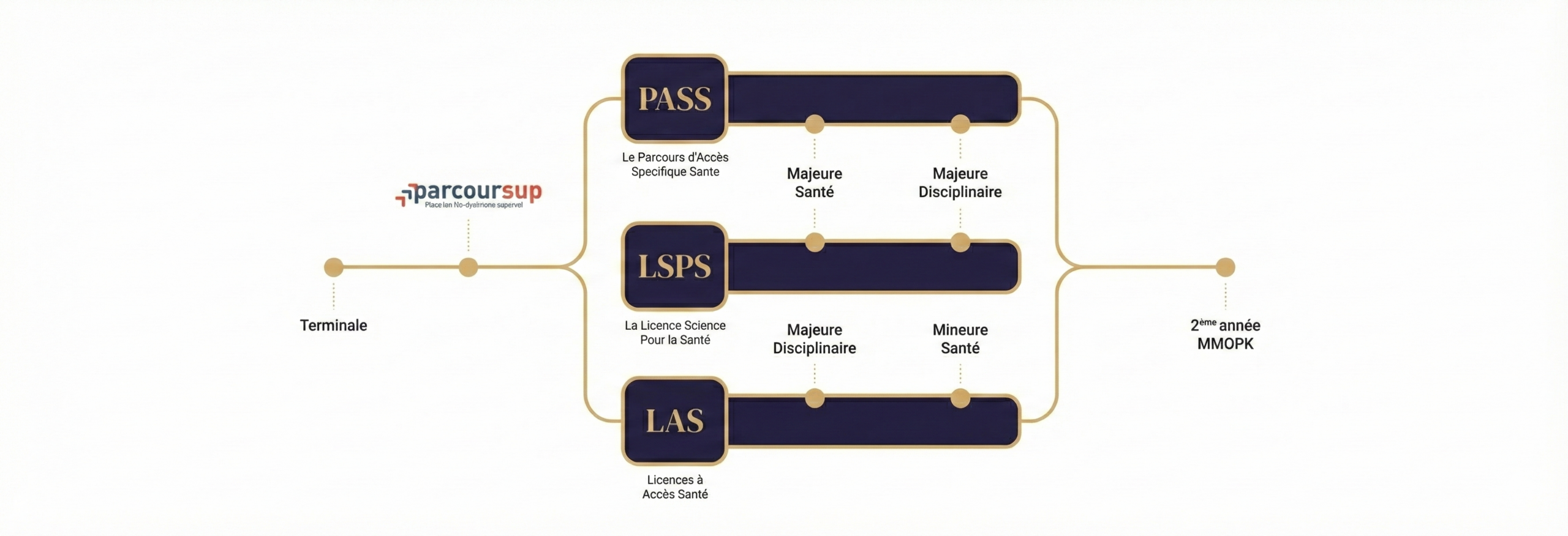 L’accès aux filières médicales et paramédicales (médecine, maïeutique, odontologie, pharmacie, kinésithérapie) repose aujourd’hui sur trois parcours : le PASS, la LAS et la LSPS.